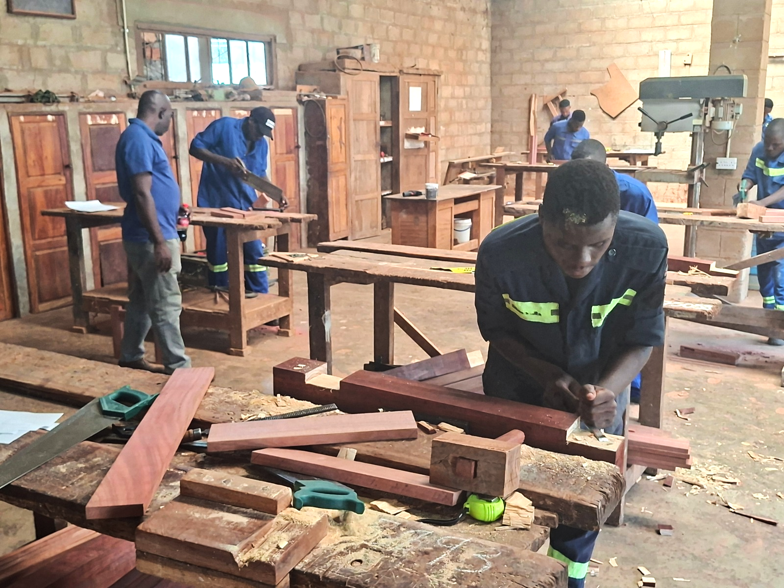 nowe ławki, ambony, ołtarz i drzwi do kaplic w Kazembe, Salandze i innych wioskach; przeprowadzono naprawy wyposażenia kościoła w Kazembe; wykonano łóżka do pokoju aspirantów oraz drzwi do nowych budynków szkolnych, kaplicy i pomieszczeń Oratorium.