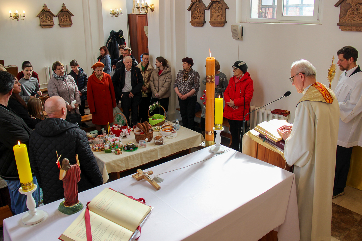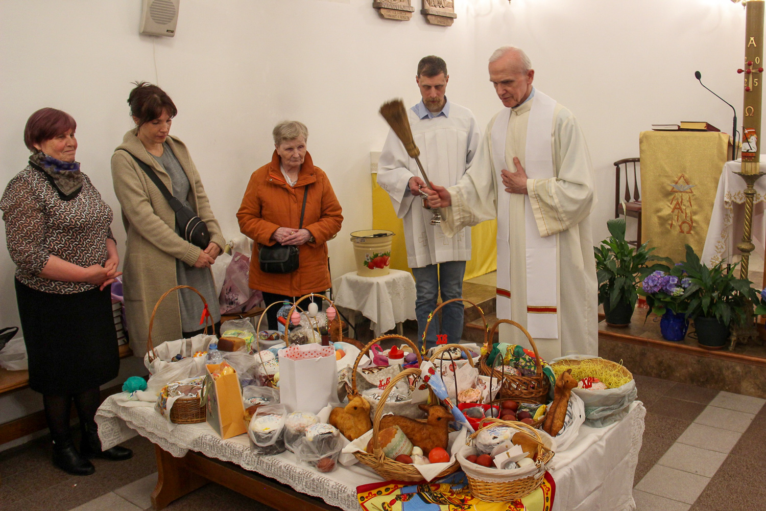 U nas, ze względu na małe wspólnoty parafialne, nie ma tłumów na Mszach świętych (w Gatczynie w sumie na dwóch mszach bywa około 80 osób), tak samo na Wielkanoc, tutaj nazywaną Paschą.