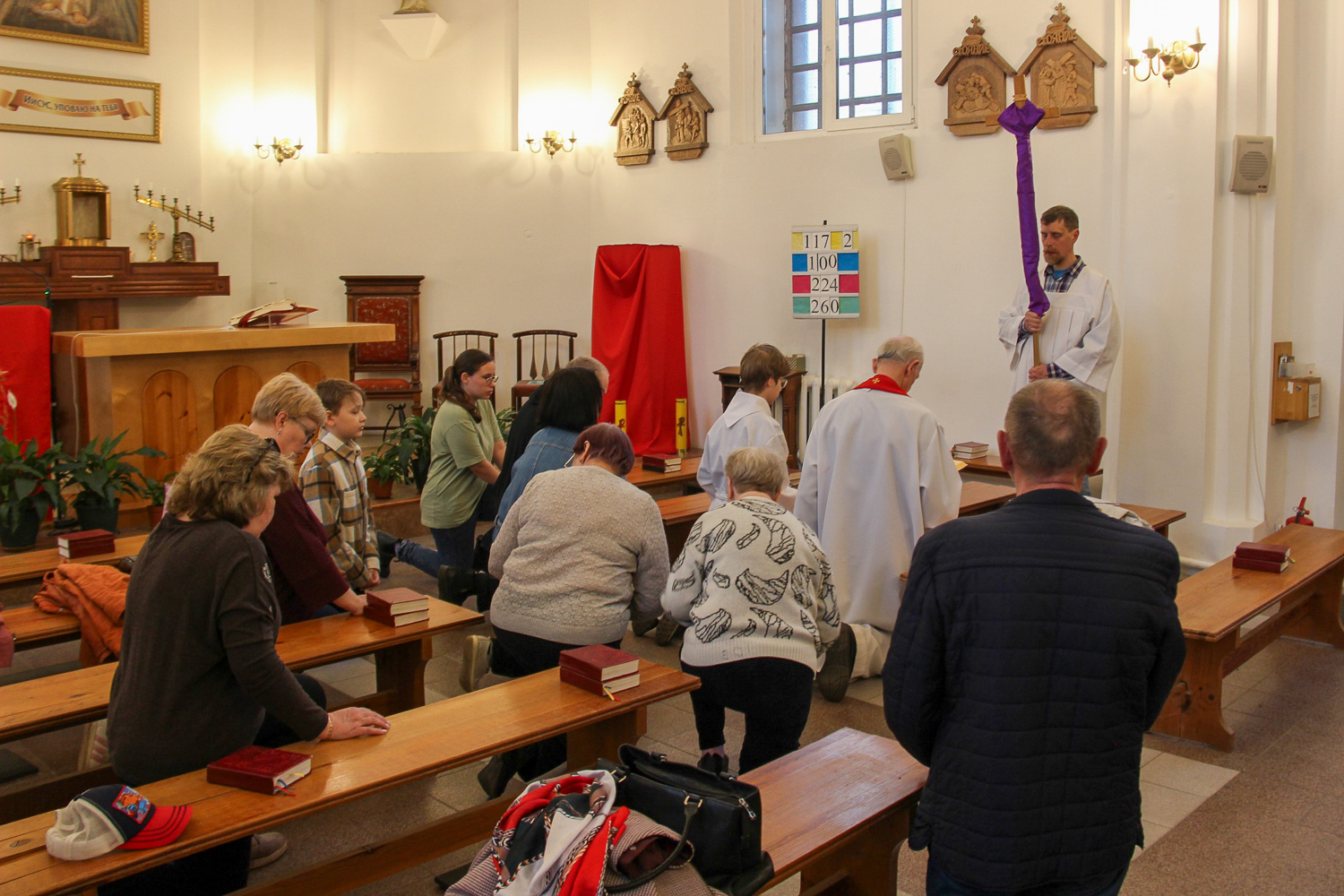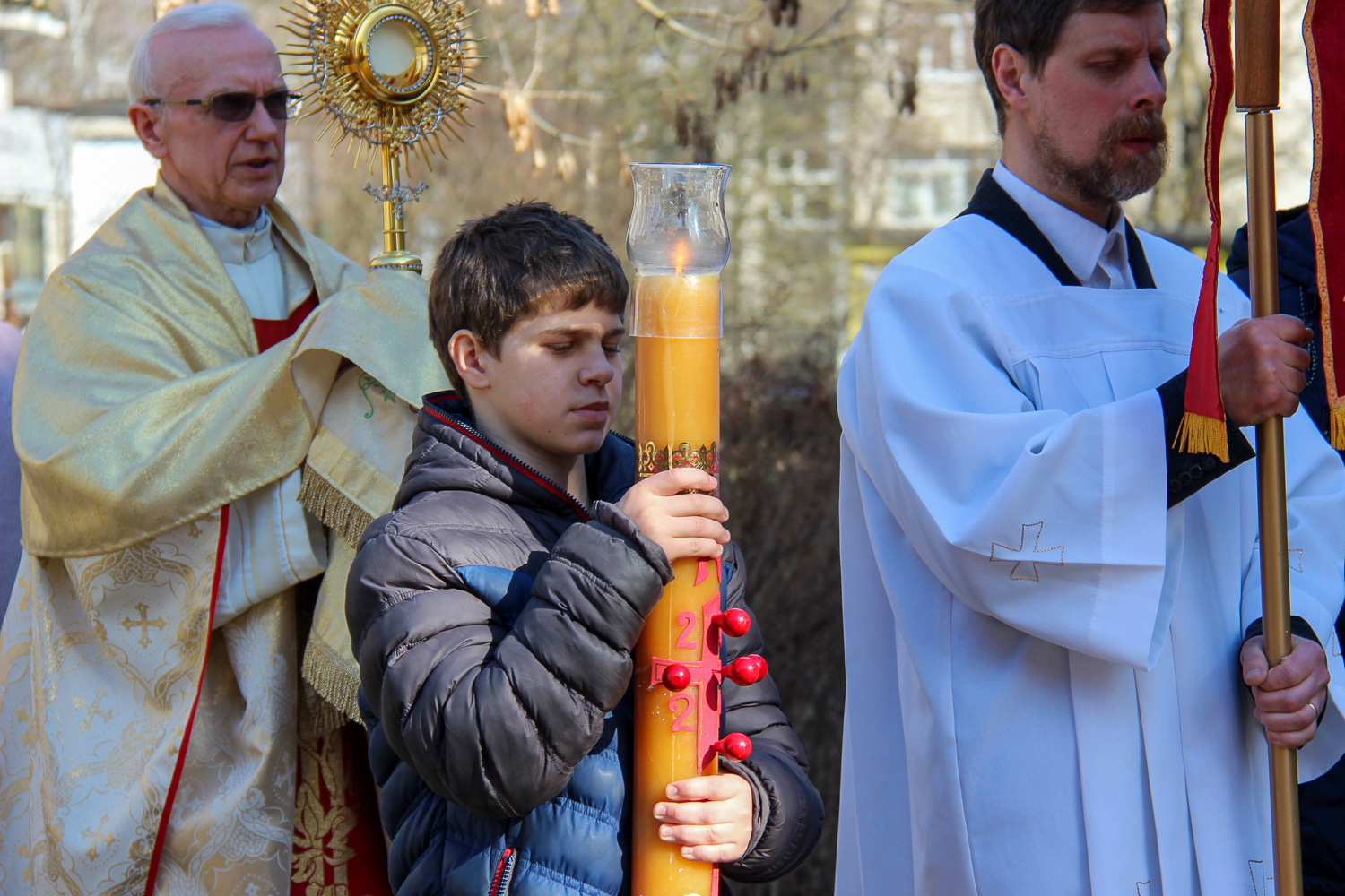 Triduum Paschalne staramy się przygotować dobrze. W Wielki Czwartek i Piątek liturgia rozpoczyna się o 20:00, a Wigilię Paschalną rozpoczynamy o 22:00. Zwykle u nas jest jeszcze chłodno i leży trochę śniegu, więc liturgia światła oraz ognisko koło kościoła w noc paschalną odbywają się w zimowej scenerii. Rezurekcja, ze względu na nocną liturgię, odprawiana jest w godzinach przedpołudniowych.