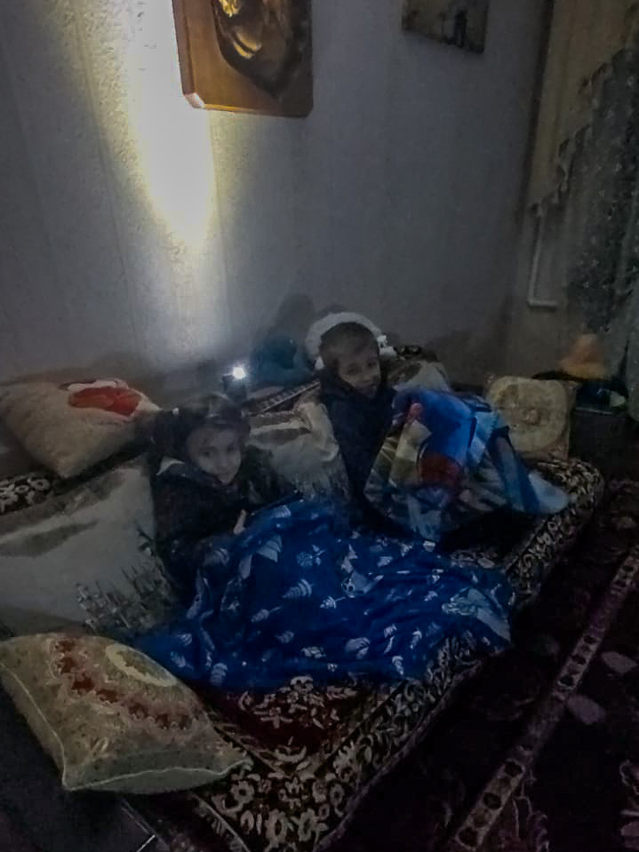 W ich sąsiedztwie mieszka też kobieta, której męża zabrali na wojnę. Została sama z trójką dzieci, z których jedno ma około dwóch lat. Oni również mają generator i uruchamiają go tylko wtedy, gdy trzeba choć trochę nagrzać dom.